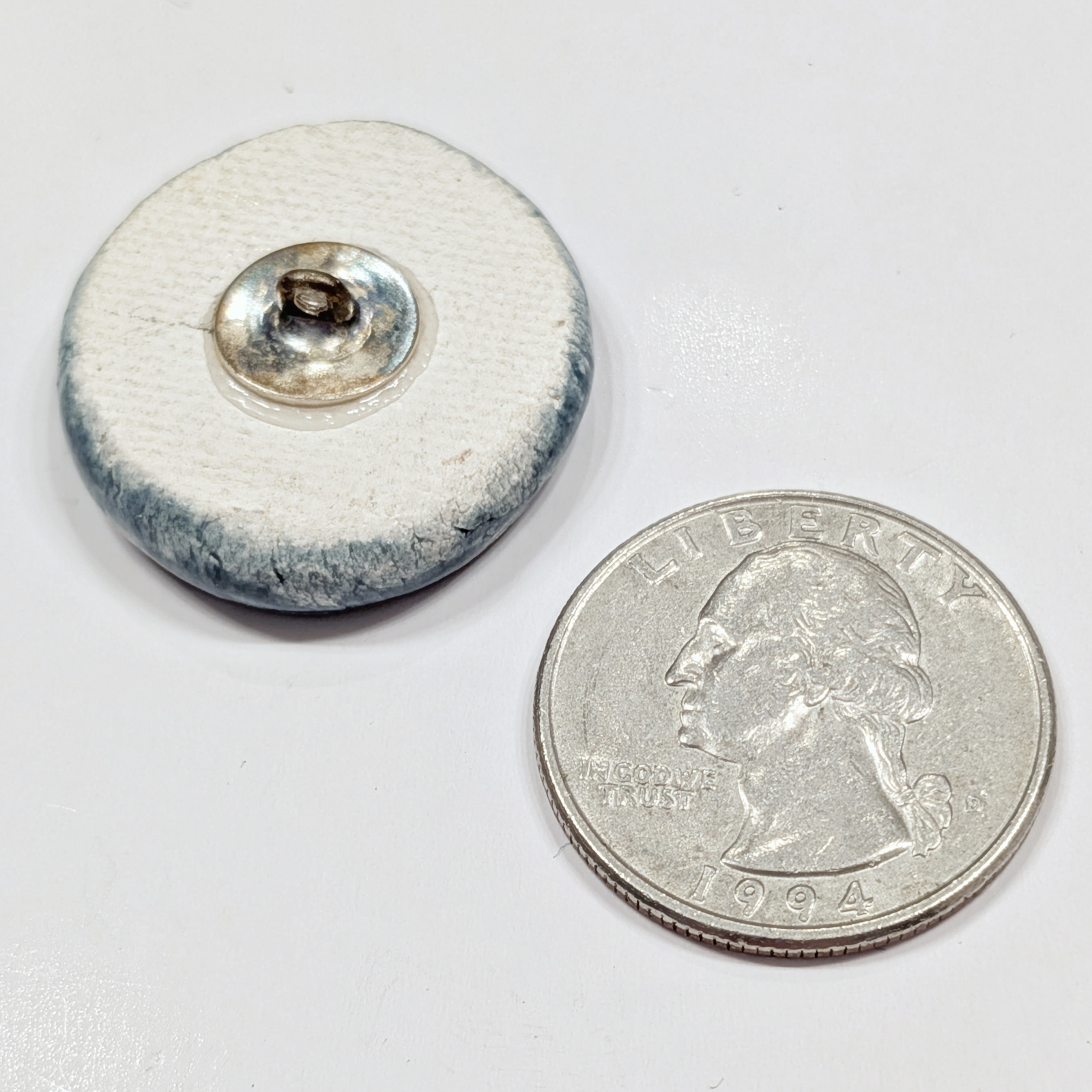 Beautiful artisan ceramic shank button with blue glaze on the front and a wave and dot pattern. Perfect for button closure bracelets or sewing projects. The button measures 1 inch across.