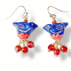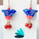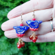 I am so in love with these earrings! The bright colors really pop! The cute, royal blue birds have a gold metallic wash in the recessed textured areas, which highlights the wings and eyes. I wired the birds into little red "nests" and dangled red "berries" beneath them. They hang from gold metal ear wires and are ready to fly home with you! The bird earrings measure 1¾ inches long.