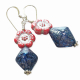Blue Sparkly Venetian Glass Earrings Red Flowers