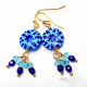 Blue and turquoise are such a happy color combination. They look especially striking in these boho chic, artisan earrings. The beautiful circular beads are textured in a radiating pattern. The raised areas are blue, while turquoise fills the recessed areas. I love these beads and they are the only pair I have. Your earrings will be one of a kind. Three dangles fall below the circle beads. Each dangle features small turquoise and blue beads on gold metal wires. The earrings measure 2 inches from the top of the ear wires to the end of the dangles.