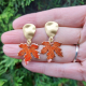 Celebrate the glorious colors of fall with these autumn leaf earrings. The metal maple leaves are hand enameled in burnt orange with brown veining. They hang from wavy, matte gold post earrings. The earrings measure 1¼ inches. These one of a kind earrings will give your fall wardrobe the perfect finishing touch.