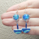 These fun, modern earrings feature handmade lampwork glass with swirls of light and dark blue, plus a hint of green. I've paired the lampwork glass with modern, geometric half circles by British polymer clay artist, Jon Burgess. The swirls of blue on the semi circles perfectly echoes the vibe of the handmade glass. These versatile earrings will bring you many compliments. The earrings measure 1.75 inches from the top of the ear wire.