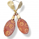 Rugged and classy - opposites attract! Leather ovals with concentric circles impressed on both sides are paired with a small bone, cube beads and wavy matte gold earring posts. These handmade earrings are very lightweight and will look great with many outfits. The first photo shows the earrings without the post backs, because the backs don't show from the front, when you're wearing the earrings. The earrings are about 2.25 inches long.