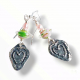 Handmade pewter hearts draw the eye to these earrings. The raised heart design is set within an inverted teardrop shape. The organic design, and the contrast between the shiny polished areas and darker, recessed spaces, lends interest and keeps these hearts from being the standard, commercial hearts we've all come to expect. Perched above the pewter hearts are handmade lampwork glass rondelles, with swirls of green and pink. At the very top are small, pink glass pearls. These earrings would make a delightful Valentines day gift, while being great for year round wear. The earrings are 2 inches long.