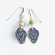 Pewter Heart Earrings Rustic Pink Green Glass
