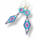 Pink Flower Earrings Blue Brick Stitch Handmade