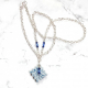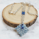 Snowflake Pendant Necklace Blue Crystals Handmade Ceramic Silver Chain